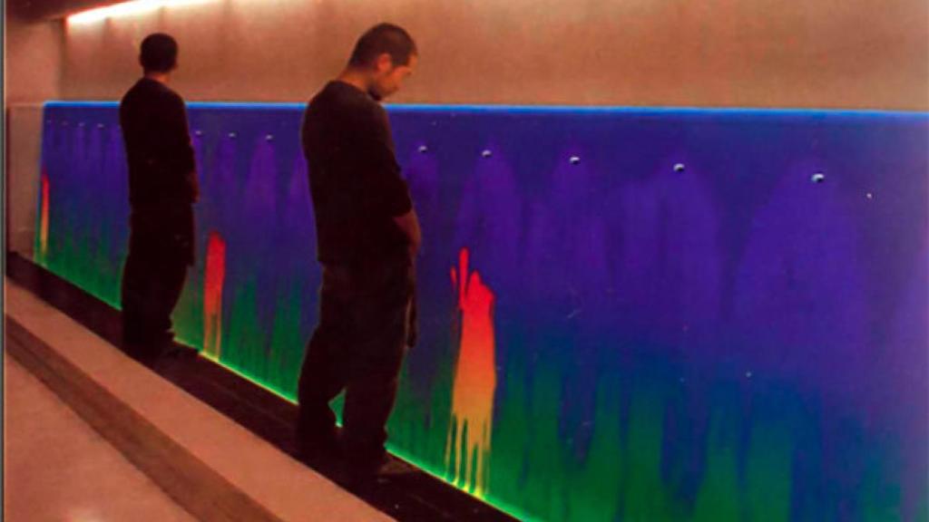 He sido incapaz de encontrar el origen de esta imagen (la fuente es esta) y la localización del baño público, pero me ha sido imposible no reseñar esta ¿maravilla? Una idea alocada convertida en realidad: un fondo de urinario termocrómico que cambia de color con la temperatura del "agüita amarilla". ¿Alguna vez has escrito en la nieve meando? Pues más o menos lo mismo.