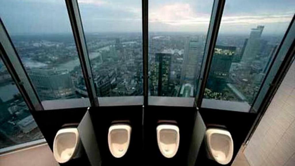 Imagina ir al baño y situarte frente a una cristalera en lo alto de un rascacielos. Concretamente en el piso 49 del Commerzbank en Frankfurt, Alemania. Las vistas de noche deben ser magníficas.