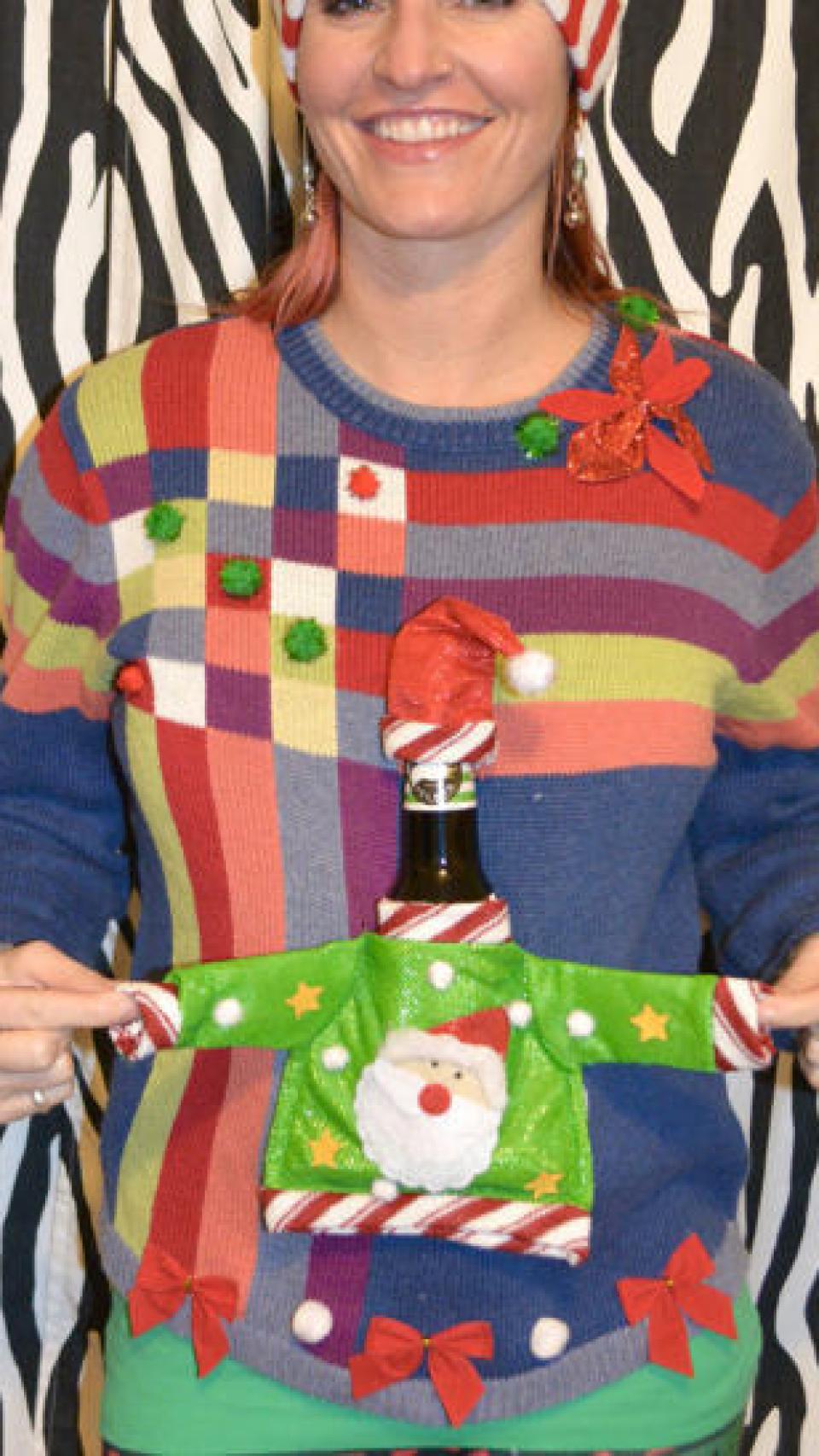 Pero no solo de tetas al aire vive The Sassy Grandma. La Navidad es una época de celebración y si algo va vinculado a las celebraciones es el alcohol.Y en ocasiones ir por el mundo con una botella en la mano puede no ser lo más cómodo del mundo. Pero no os preocupéis, también tenéis prendas que os permitirán no perder vuestra bebida y mantener las manos libres: