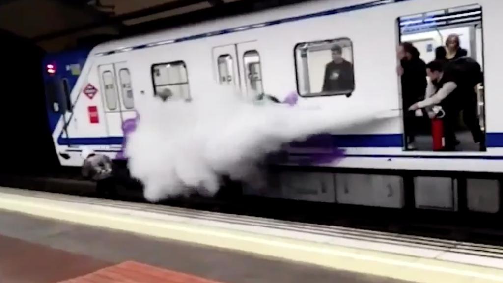 Un maquinista del metro de Madrid ahuyenta a unos grafiteros con un extintor