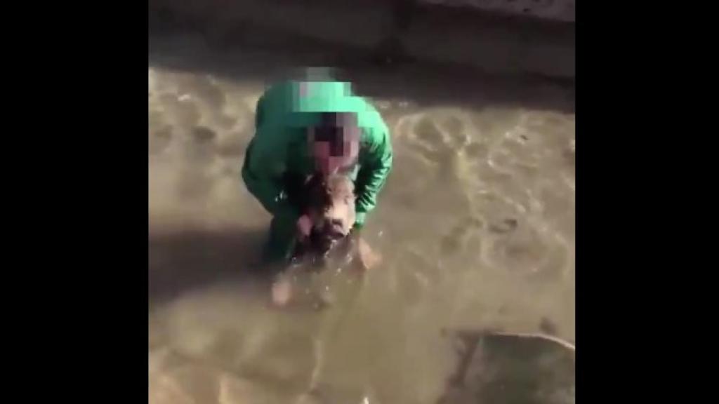 A veces es complicado entender a ciertos seres humanos, como al individuo que protagoniza este vídeo. Tras encontrar un jabalí -todavía no adulto, o seguramente no hubiera podido actuar como actuó- en un canal de riego, lo zarandea, lo ahoga y lo golpea. Lo agarra por las orejas y grita "mira a cámara".