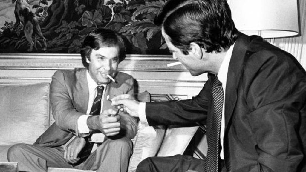 El estilo desenfadado de Felipe sería característico durante esta época, acorde con el espíritu obrero de los inicios del PSOE. No ganó las primeras elecciones españolas, tampoco las segundas: el partido UCD de Adolfo Suárez quedó victorioso, aunque sin mayoría absoluta. La siguiente foto es una de las más icónicas de ambos líderes políticos. Es del 25 de junio de 1977.