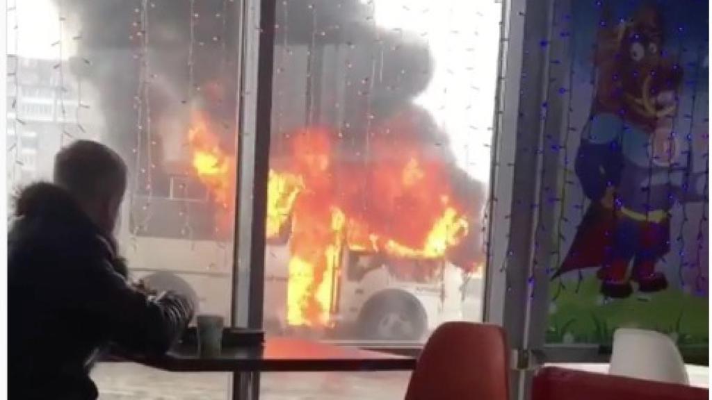 El incidente tuvo lugar el pasado 7 de marzo, cuando el autobús comenzó a desprender humo de la zona del motor y a continuación a arder. No hubo heridos y poco después los bomberos llegaron para controlar el incendio: