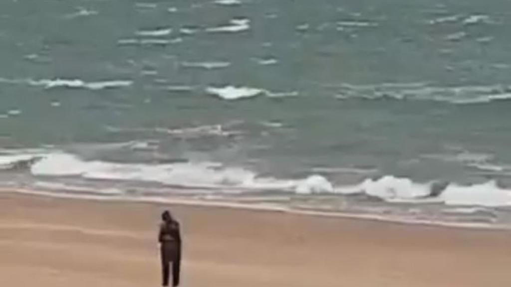 El vídeo está grabado desde una de las garitas que la Benemérita tiene en el Dique Sur de la playa de La Hípica el pasado sábado, cuando se registraron vientos de hasta 90 kilómetros por hora. Menos de un minuto que vale para ver a un hombre en la orilla y escuchar los gritos de la persona que graba: "Moro, vete de ahí, que te va a llevar el viento, capullo".