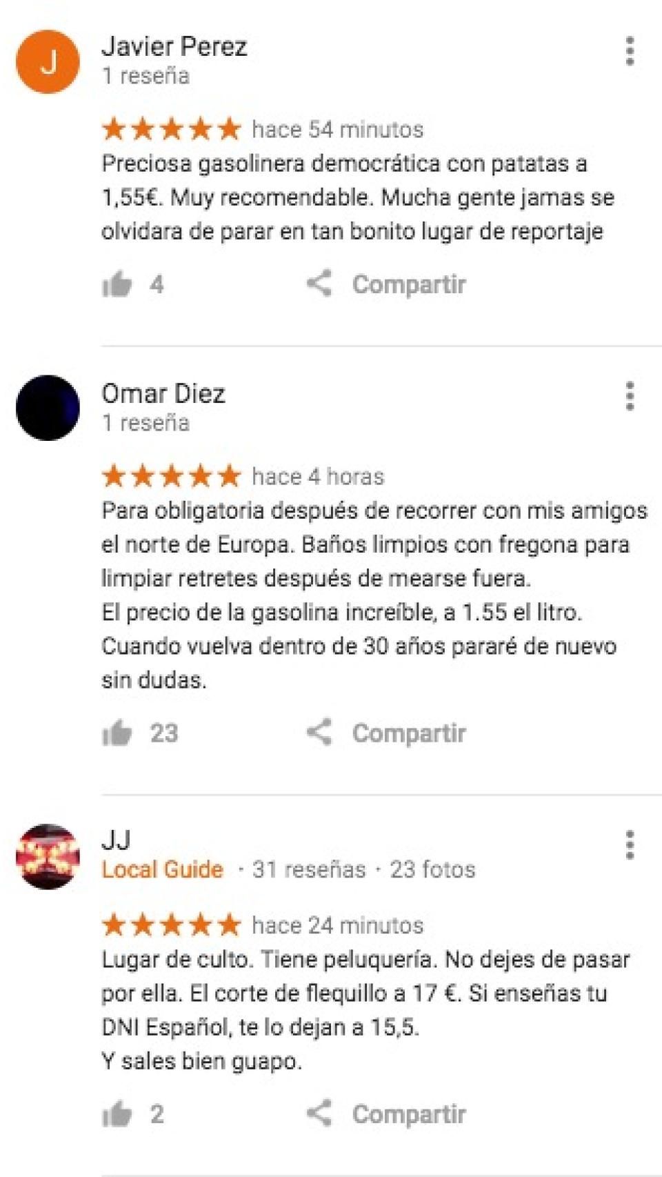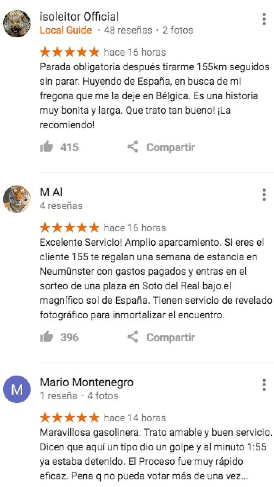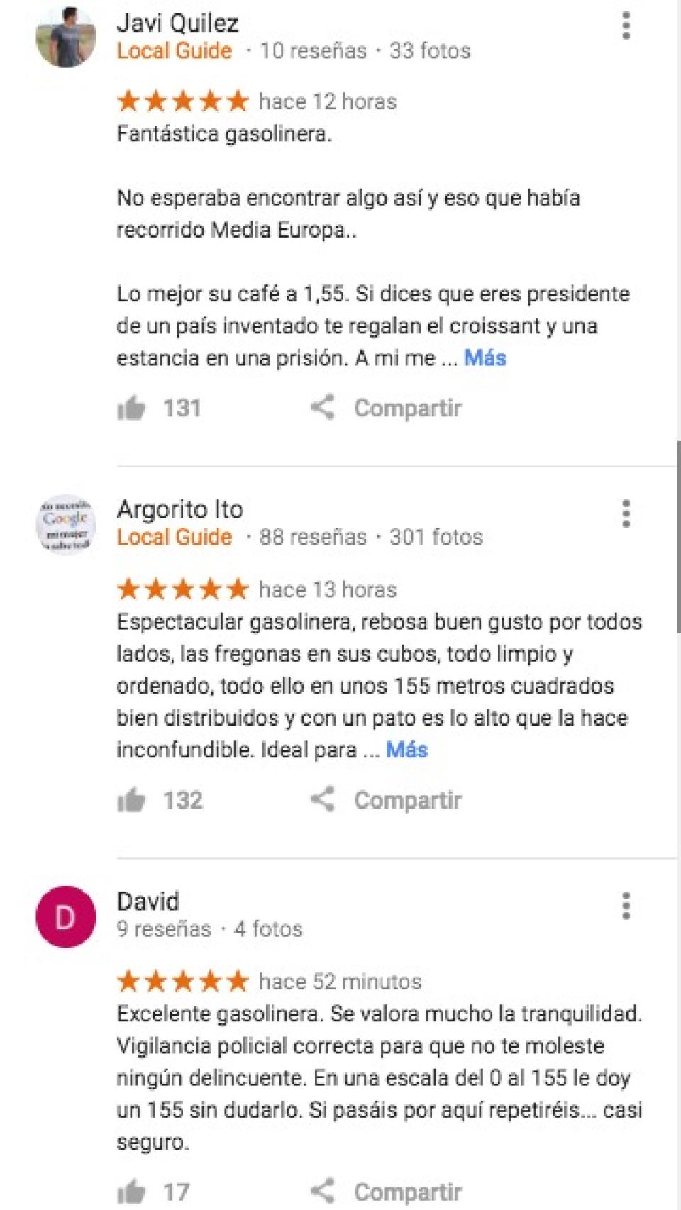 Google Maps y sus reseñas se han convertido en una de las mejores formas de atraer clientes. Te dan mayor visibilidad en las búsquedas y, ante la duda, el exigente consumidor del siglo XXI siempre busca el local que tenga más estrellitas. Y pocas gasolineras deben tener una puntuación de 4,9.