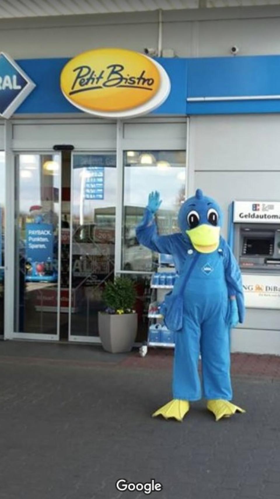 En la Jungla. Los responsables de la gasolinera en la que detuvieron a Puigdemont deben estar ojipláticos al ver cómo la puntuación de su establecimiento vuela tan alto como el pato azul que la preside.