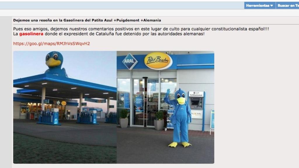 Forocoches eleva al estrellato la gasolinera en la que detuvieron a Puigdemont
