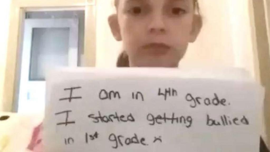 Cassidy explica, valiéndose de unos carteles, que sus compañeros le escupen en sus cosas, que no querían sentarse con ella en el comedor y que le decían que la iban a matar o la animaban a que se suicidara. Todo, dice la niña, sin que el director hiciese nada al respecto, por eso asegura que se siente sola.