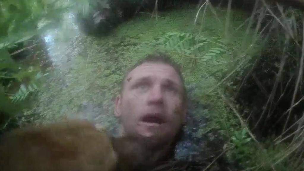 Cuando lo encontraron, únicamente su cabeza se mantenía por encima del nivel del agua. A pesar de que el sospechoso no parecía muy dispuesto a seguir huyendo e incluso parecía alegrarse de ver a la policía, los agentes lo esposaron primero y luego lo sacaron.