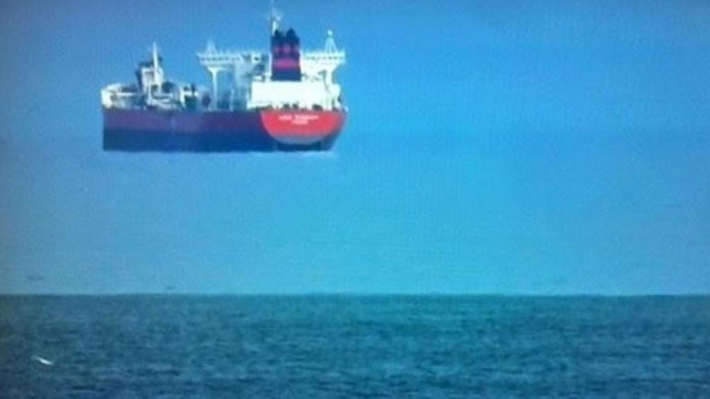 Otra fotografía del mismo fenómeno se captaba en una retransmisión deportiva que realizó para todo el mundo el canal SkySports, dejando de nuevo en el aire cómo es posible que veamos tan claramente al buque flotando por encima de la línea del horizonte.
