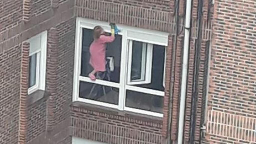 Al contrario de lo que pueda parecer, esta Spiderwoman santanderina no está realizando una práctica tan poco habitual como debiera. Y es que no son pocas las que cruzan el umbral de sus ventanas como si fueran inmortales con tal de que nadie vea sucias ni las persianas.