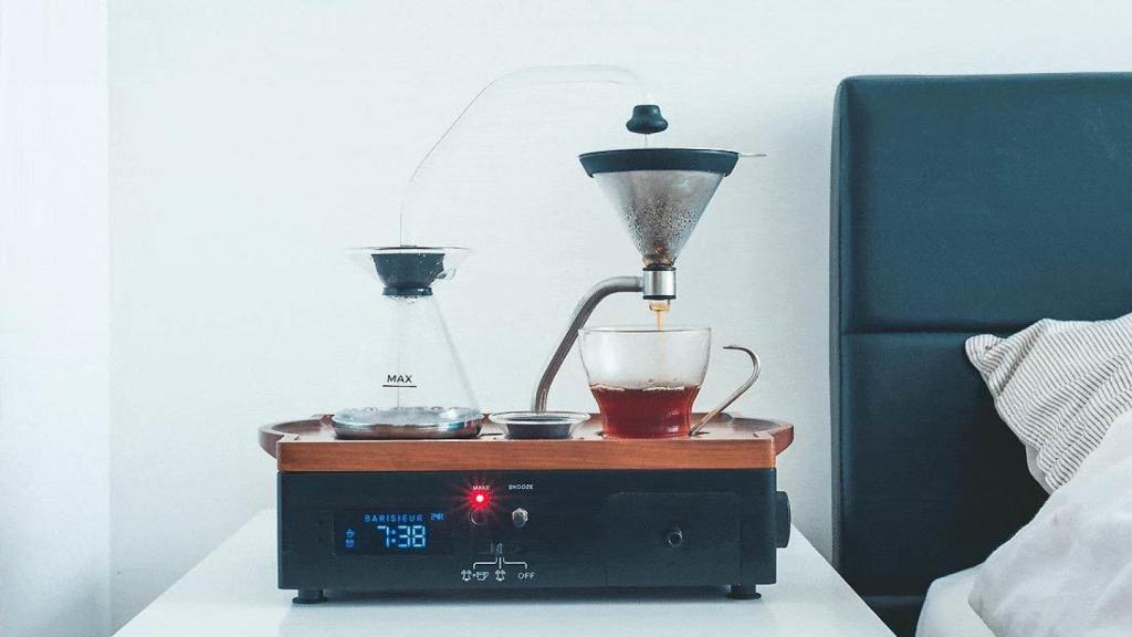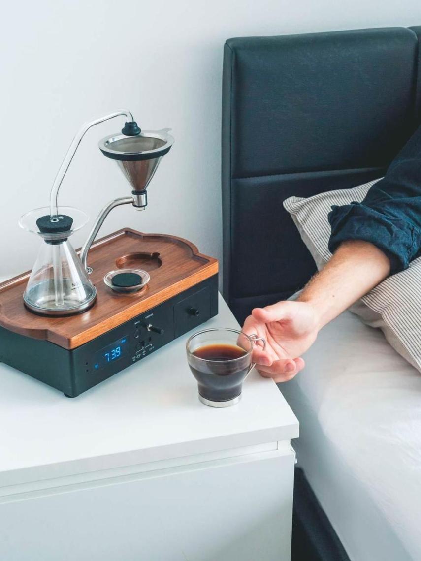 Este curioso despertador te saca del sueño con café recién hecho sobre tu cabeza