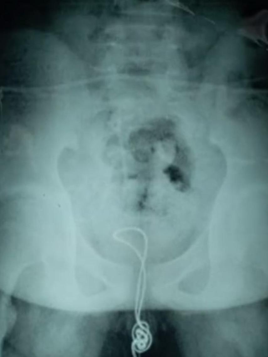 En el hospital local trataron de extraerlo aplicando lubricante pero fue imposible, por lo que lo transfirieron al Hospital Infantil de Harbin al día siguiente. Allí descubrieron el problema: el chico había cortado la cabeza para introducirlo, al llegar hasta la vejiga, se lió y acabó formando un nudo -como los auriculares en el bolsillo, pero en su sistema urinario-.