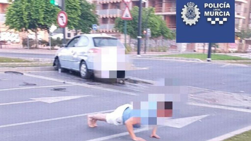 Tiene un accidente borracho y se pone a hacer flexiones para no dar positivo