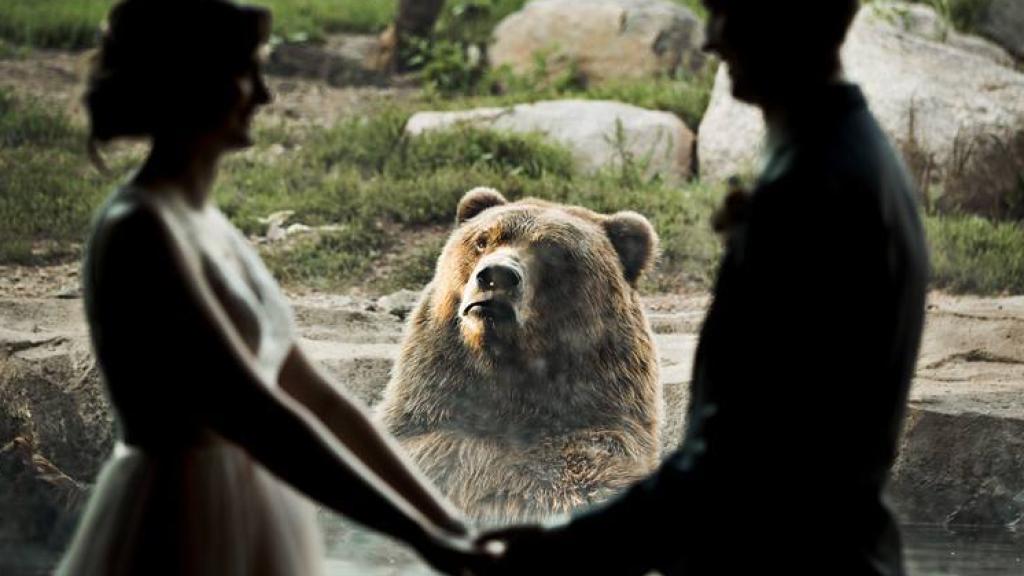En la Jungla. En busca de una boda original, esta pareja se casó en un zoo. Lo que no se podían imaginar que la indignación del oso con su matrimonio les elevarían al estrellato viral.