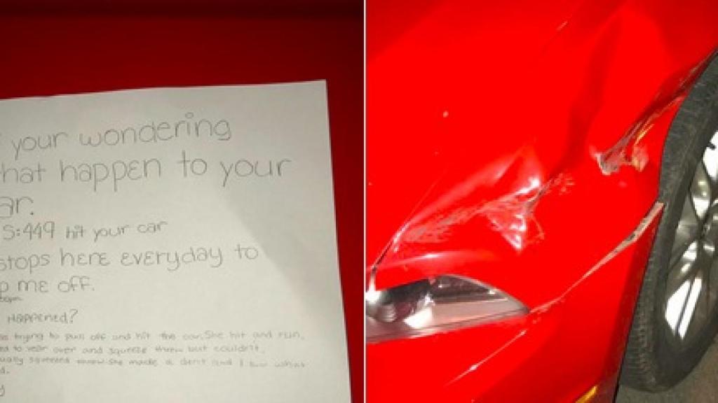 "Si te estás preguntando qué le ha pasado a tu coche. El autobús 449 lo golpeó. Para aquí todos los días a dejarme a las 17:00. ¿Qué pasó? Ella intentaba arrancar y le dio al coche. Lo golpeó y se fue. Intentó dar marcha atrás y meterse por el hueco pero no podía. Te hizo una abolladura y vi lo que pasó. Lo siento. Una mujer en el asiento del conductor 999", ponía la nota.