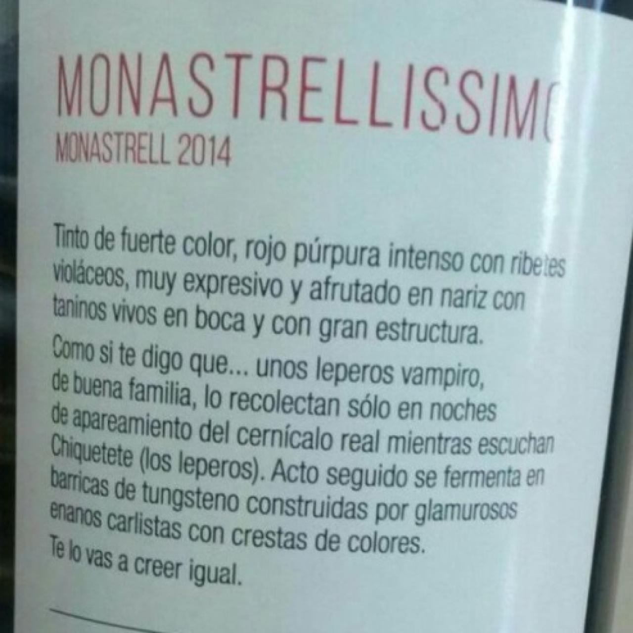 Con esto de las etiquetas virales nos hemos acordado de la fantástica cobertura del vino Monastrellissimo, de Viníssimo, que se había popularizado hace un par de años en las redes. Y es que en esta ocasión juegan con el supuesto esnobismo existente en torno al mundo del vino y han tuneado su nota de cata: