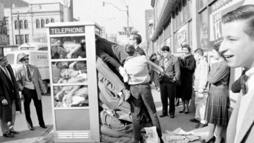Ahora están en extinción, pero hubo un tiempo en el que, si querías llamar por teléfono fuera de casa, debías buscar una cabina. Habitáculos de cristal de algo menos de 1 m2 y 2 m y medio que permitían a una persona hablar por teléfono sin demasiadas complicaciones, también a un grupo de amigos. Y a más gente, que en la década de 1950 se puso de moda ver cuántas personas entraban en una de esas cabinas. Como refleja Business Insider, el "récord" se estableció en Sudáfrica con 25 personas.