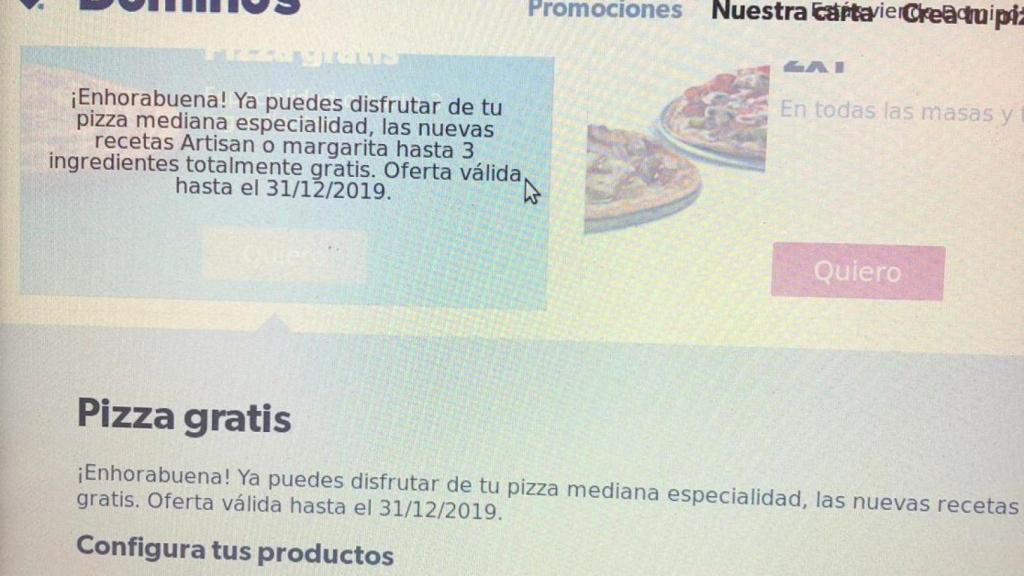 Las promociones las carga el diablo. Esta debería ser la frase que tendrían que grabarse a fuego en Domino's Pizza después de su penúltima liada. Cuando todavía recordamos el concurso que habían puesto en marcha en Rusia, ofreciendo pizza gratis a aquellas personas que se tatuasen su logo, esta nueva entrega podría titularse El código fraudulento que le ha llegado a media España.