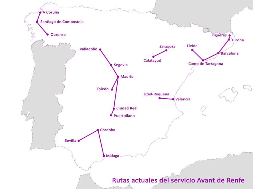 Renfe conmemora el 18 de este mes de octubre la puesta en funcionamiento de su servicio de Alta Velocidad de Media Distancia, los trenes denominados Lanzadera. Aquella primera ruta enlazaba Madrid y Puertollano, con parada en Ciudad Real. Hoy, y ya bajo la denominación Avant, existen otros ocho trayectos: Madrid-Toledo, Barcelona-Girona-Figueres, Barcelona-Camp de Tarragona-Lleida, Málaga-Córdoba-Sevilla, Madrid-Segovia-Valladolid, A Coruña-Ourense-Santiago, Calatayud-Zaragoza y Requena-Valencia.