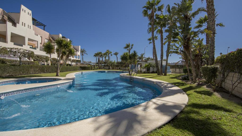 La vivienda del sorteo se ubica a escasos metros de la playa, en una urbanización privada con piscina y jardín y cuenta con orientación al mar, lo que supone una fuente de luminosidad.