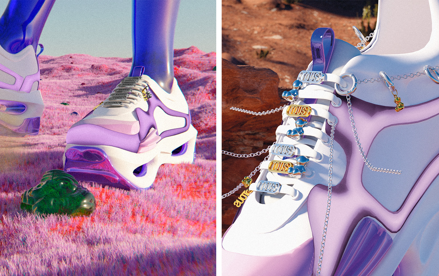La digitalización, esencial en TOUS y patente en el renovado establecimiento, también ha estado presente en el proceso de creación de TOUS STEPS desde el principio a través de la colaboración con el creador digital Adrián Besada, que ha diseñado una sneaker virtual que permite desarrollar un universo de estilismos libres e inspiradores.