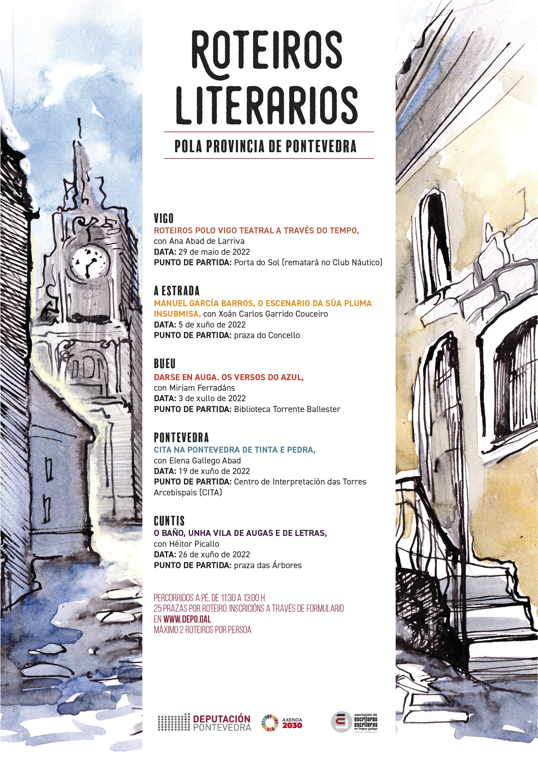 Un itinerario dedicado al "Vigo teatral a través del tiempo" abre este próximo domingo 29 de mayo la V edición de las Rutas Literarias que la Diputación de Pontevedra desarrolla en colaboración con la Asociación de Escritoras y Escritores en Lengua Gallega (AELG).