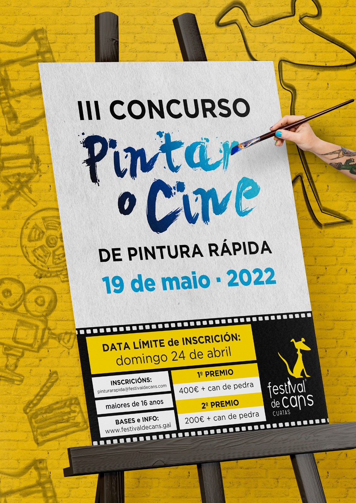 El Festival de Cans celebrará del 18 al 21 de mayo su XIX edición. Mientras tanto, la organización ha lanzado la convocatoria "Pintar o cine", un concurso de pintura rápida en colaboración con la empresa Pinturas Galpi.