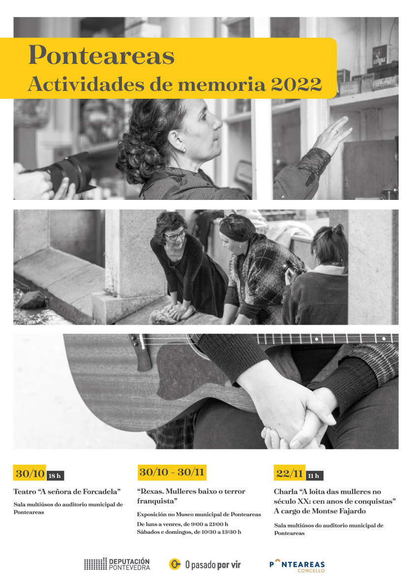 El Concello de Ponteareas, en colaboración con la Diputación de Pontevedra, organiza una serie de actividades relacionadas con la memoria histórica bajo el nombre de ‘O pasado por vir’. El objetivo de las jornadas es dar a conocer las iniciativas que se estaban llevando a cabo en el primer tercio del siglo XX en Galicia antes del golpe de Estado de 1936.