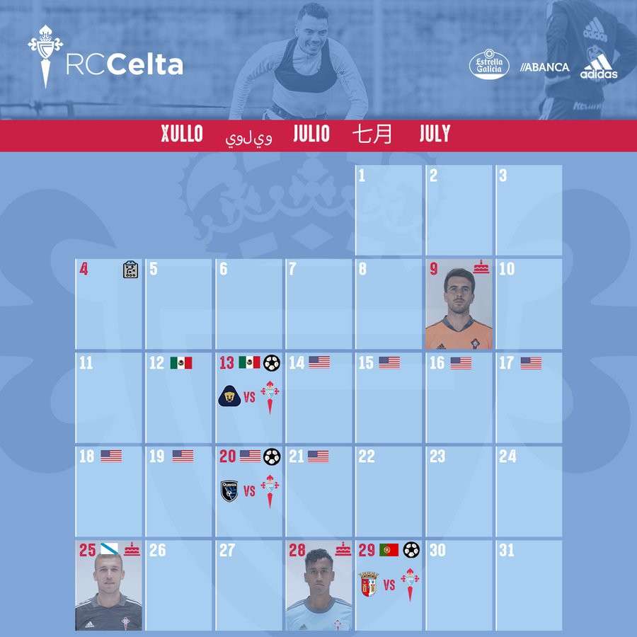 Dentro de una semana, el Celta viajará a México, donde arrancará su gira americana. El miércoles 13 de julio disputará su primer partido de preparación ante el Pumas y, una semana después, se enfrentará al San José Earthquakes en California. El primer encuentro en suelo europeo será el 29 de abril ante el Braga en la ciudad portuguesa.