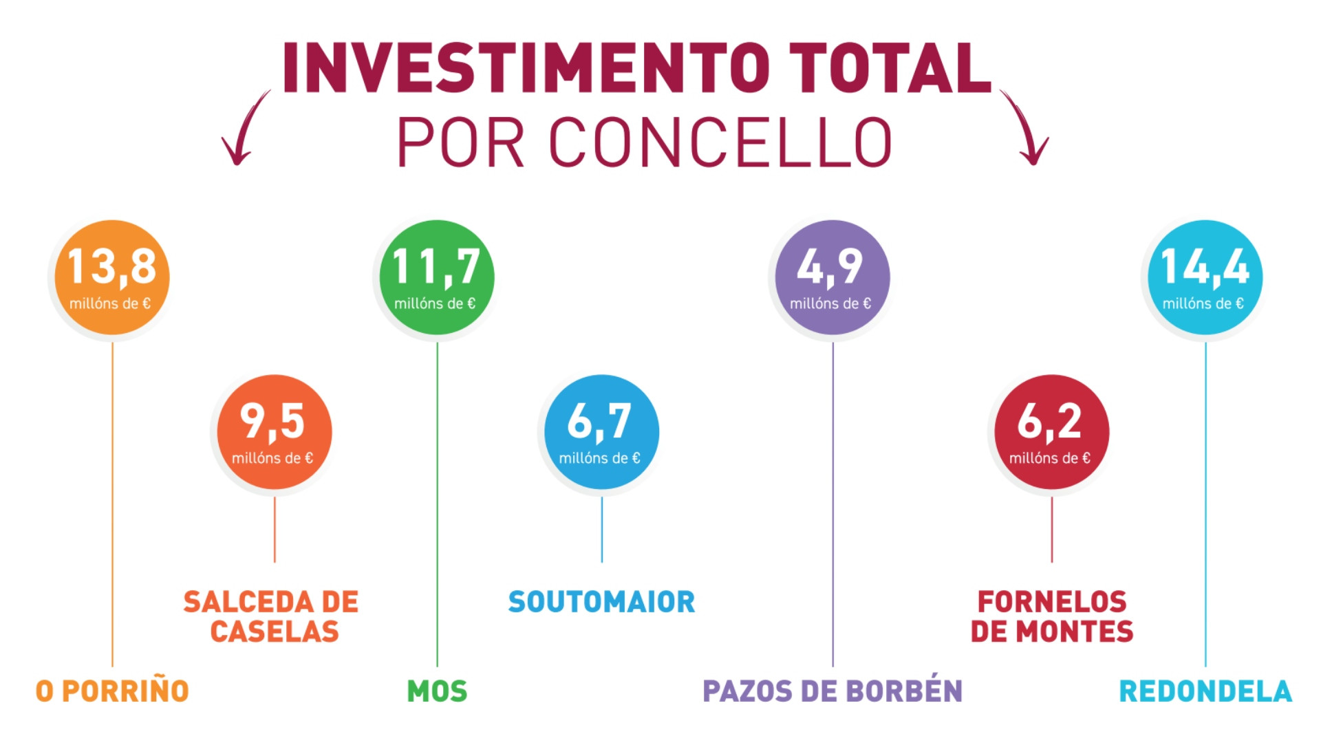La administración provincial ha invertido 69 millones de euros en los municipios de Redondela, O Porriño, Fornelos de Montes, Mos, Pazos de Borbén, Salceda de Caselas y Soutomaior