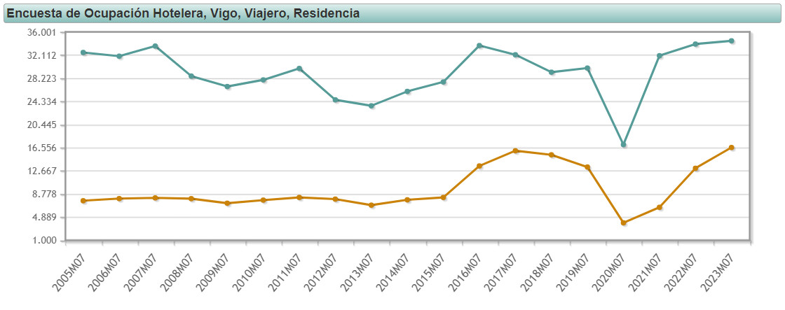 En cuanto a las pernoctas, sumando el turismo nacional e internacional, también se registraron un 1% más que en el 2019 y un 3,8% más que en el año pasado, otro dato récord para la ciudad. La estancia media de los turistas en Vigo fue en el mes de julio de 2,05 días.