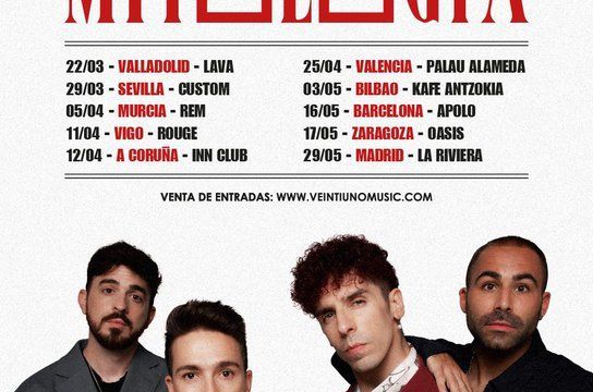 La banda Veintiuno acaba de anunciar su nueva gira Mitología y ha confirmado dos fechas para Galicia en el 2025. Tras unos meses de gran intensidad en el que han sorprendido al público en su paso por los principales festivales del país, destacando su gran actuación en el Caudal Fest 2023, ahora ofrecerán unos conciertos más íntimos en un circuito de salas para todos sus fans.