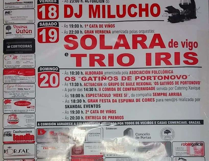 - 10:30h: Alborada con la Asociación Folclórica Os Gatiños de Portonovo