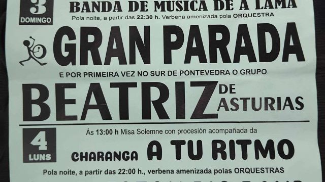 - 13:00 h · Misa solemne con procesión, acompañada por la Banda de Música de A Lama