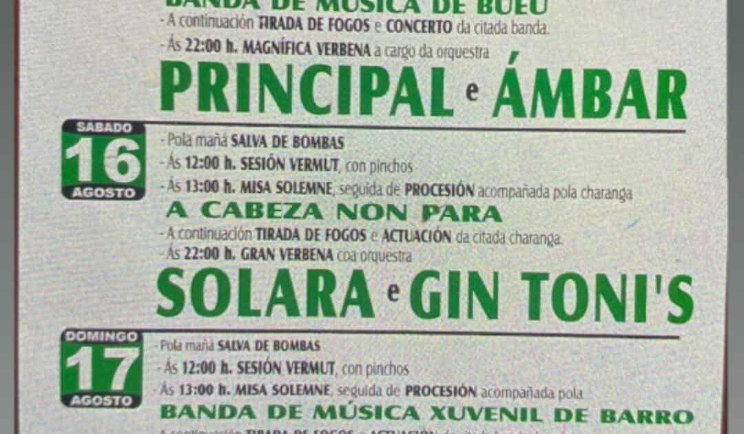 - Evento: Festas na honra a Santa María, San Roque e O Carme 2025