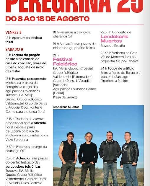 - 22:30 h: Concierto de Lendakaris Muertos en la Praza de España