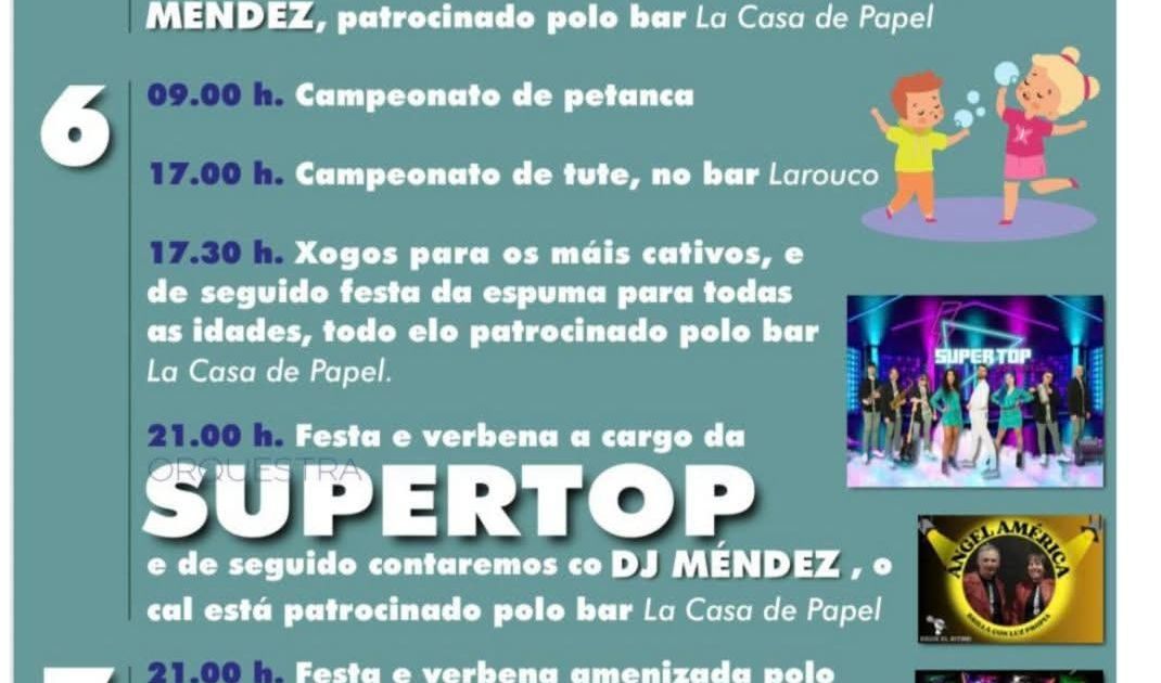 - 21:00 h: Fiesta y verbena con la Orquesta Supertop
