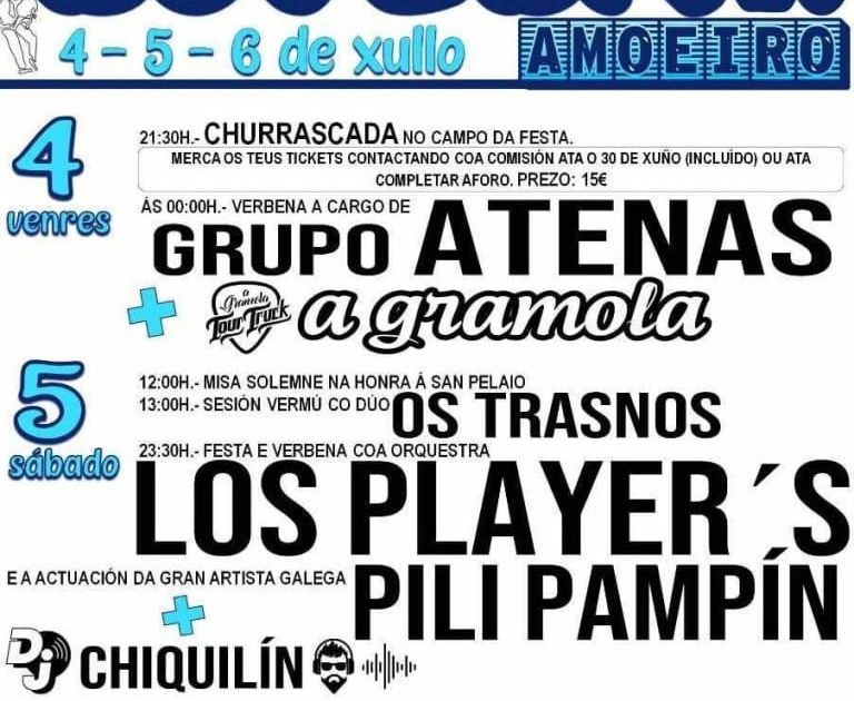 - 23:30h: Fiesta y verbena con la orquesta Los Player's, Pili Pampín y DJ Chiquilín