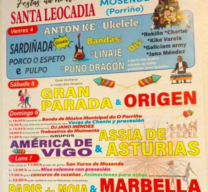 La parroquia de Mosende, en el municipio de O Porriño, celebrará del 4 al 7 de julio de 2025 sus fiestas patronales en honor a Santa Leocadia. Serán jornadas cargadas de gastronomía popular, animación musical y actos religiosos.
