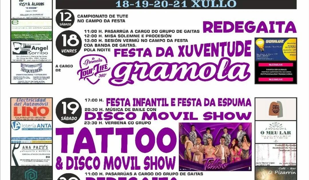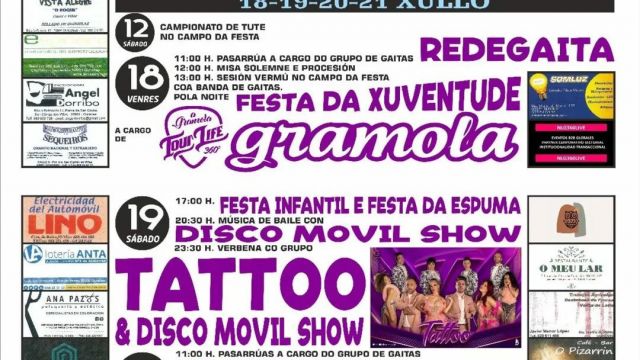 - 23:30h: Verbena nocturna con Grupo Tattoo y Disco Móvil Show