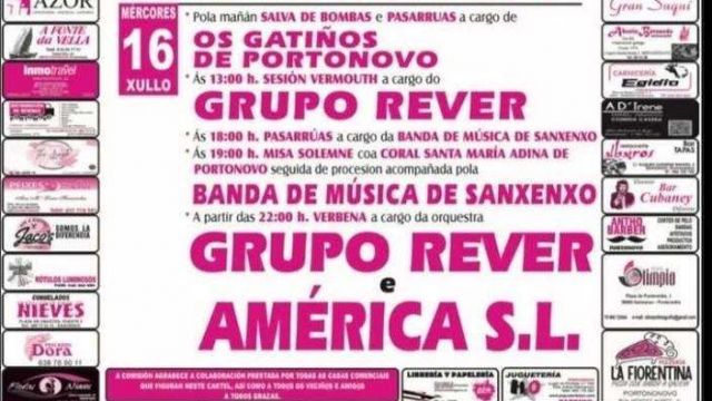 - 19:00 h: Misa solemne con la Coral Santa María Adina de Portonovo, seguida de procesión acompañada por la Banda de Música de Sanxenxo
