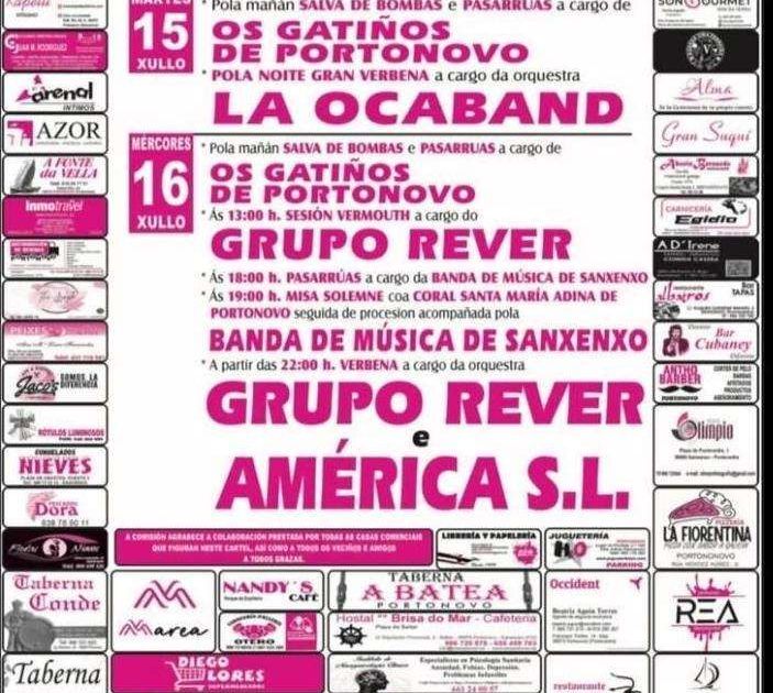 - Por la mañana: Salvas de bombas y pasacalles a cargo de Os Gatiños de Portonovo