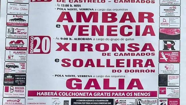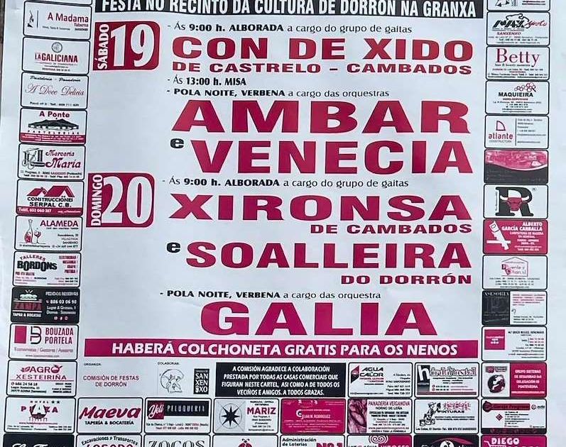 Dorrón celebrará sus grandes festas con alboradas, misas y verbenas, contando con la participación de grupos de gaitas y orquestas populares.