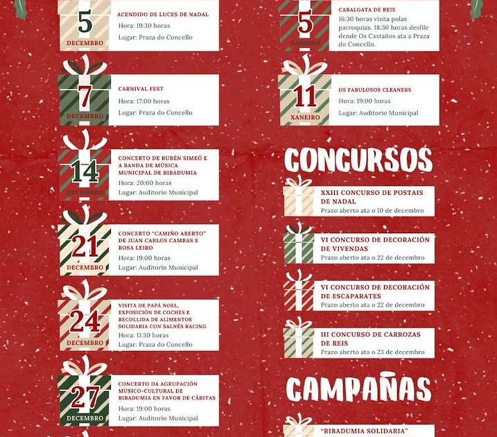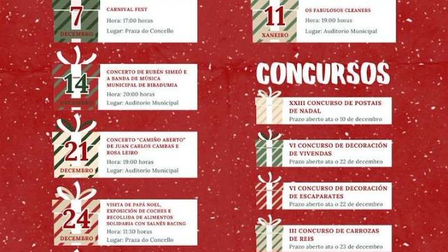 El municipio de Ribadumia celebrará la Navidad durante el mes de diciembre y hasta el 11 de enero con un variado programa de actividades lúdicas y culturales.