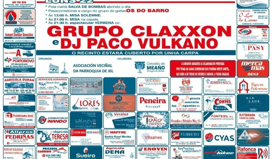 - 21:30 h: Verbena con el Grupo Claxxon y DJ Paco Vulkano.