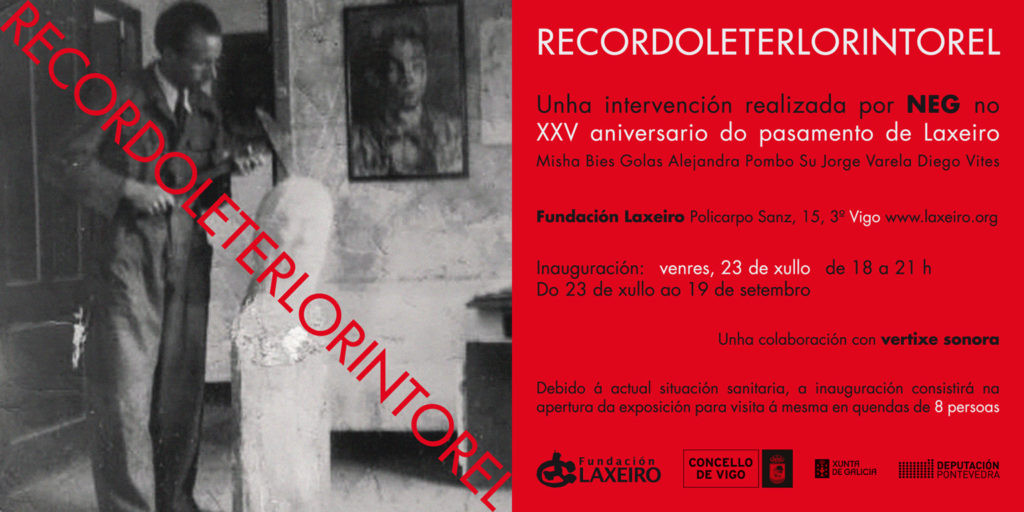 Con motivo del 25 aniversario del fallecimiento de Laxeiro, el Colectivo NEG (Nova Escultura Galega) propone un acercamiento a la figura de Laxeiro en forma de instalación sonora, realizada expresamente para la Fundación Laxeiro, reivindica la faceta del artista más irreverente y provocadora, una actitud que definió su relación con el sistema del arte durante toda su trayectoria.