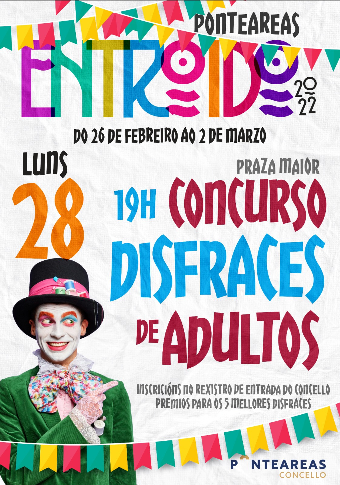 El Concello de Ponteareas (Pontevedra) celebra mañana lunes una nueva edición de su concurso de disfraces de adulto, un certamen de Entroido dirigido a personas mayores de 13 años en el que la originalidad tiene premio. Los participantes podrán lucir sus propuestas en la plaza Maior del municipio a partir de las 19:00 horas.