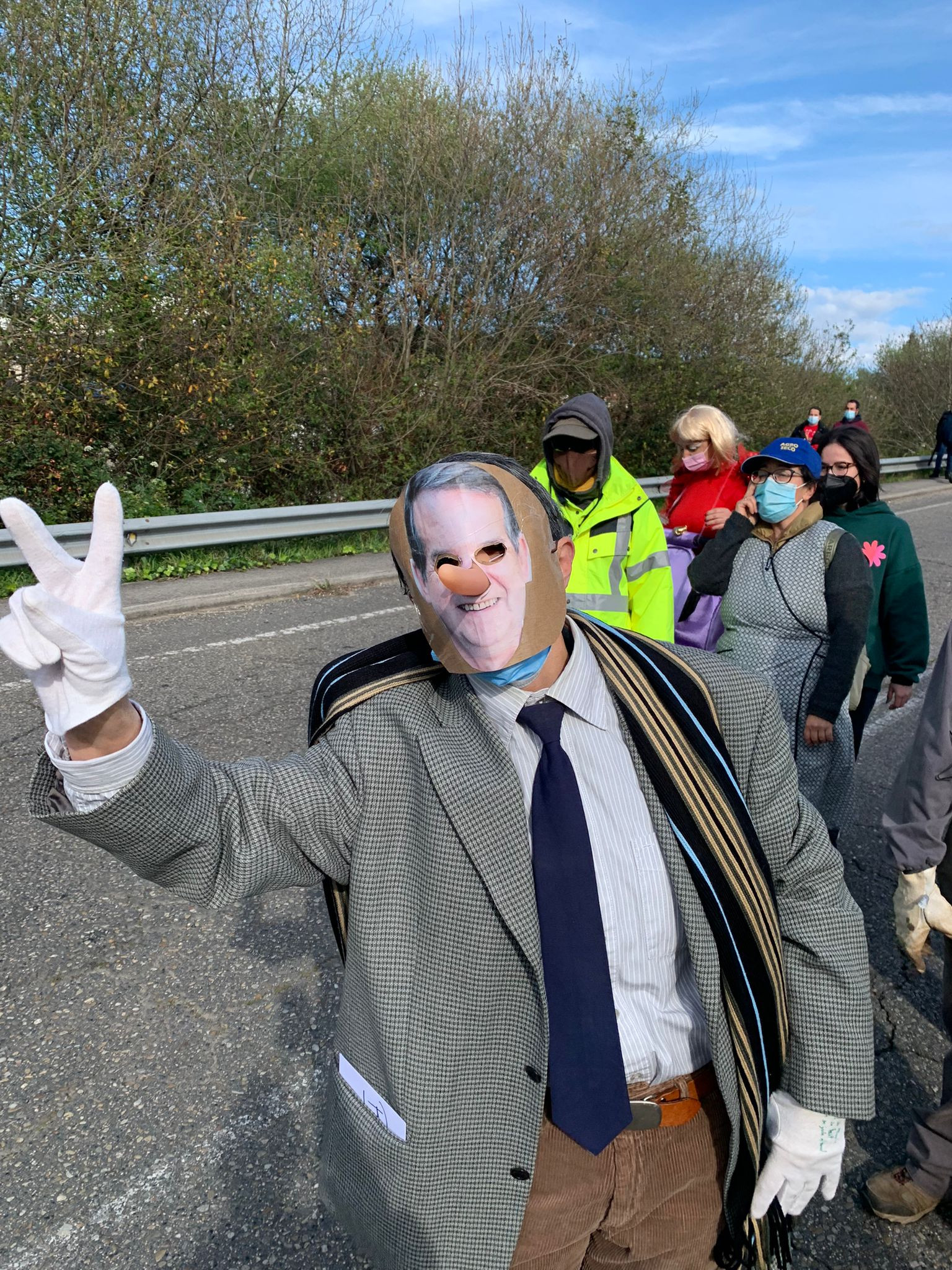 Miembros de Avibe protestan en el carnaval de Bembrive (Vigo) contra el vial PO-010