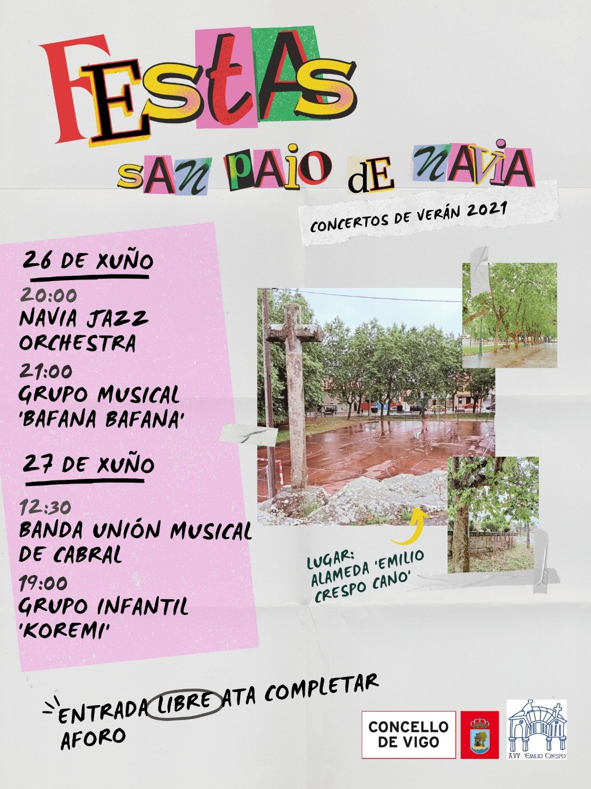 La entrada es completamente libre y gratuita hasta completar aforo en los asientos que se acondicionarán para las actuaciones. Las primeras fiestas del verano vigués comienzan en pequeño formato y respetando las medidas de seguridad contra la Covid-19, pero aseguran un verano cargado de música y ocio.